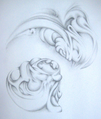 Elise mostly draws with graphite or coloured pencils on paper. Here are some examples from over the years.